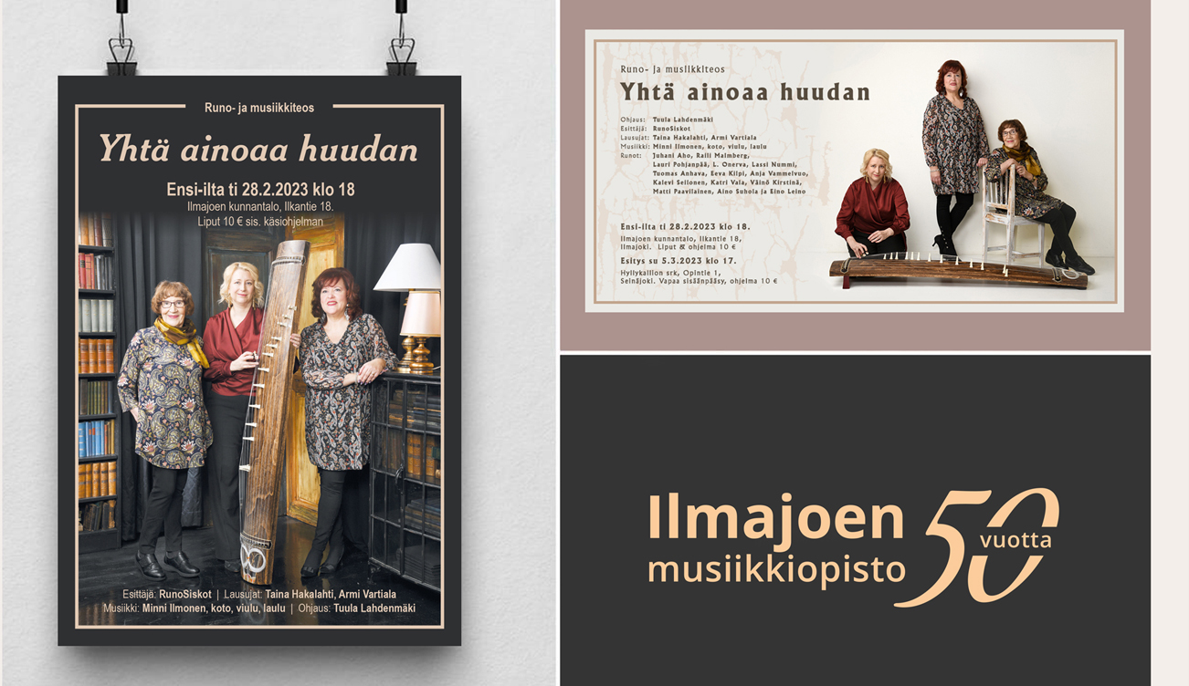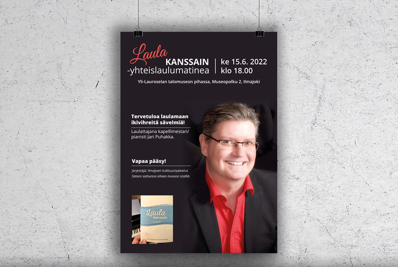 suunnittelua erilaisiin tarpeisiin: tapahtumajulisteet, mainosjulisteet, yrityksen sisäiseen käyttöön ja moneen muuhun